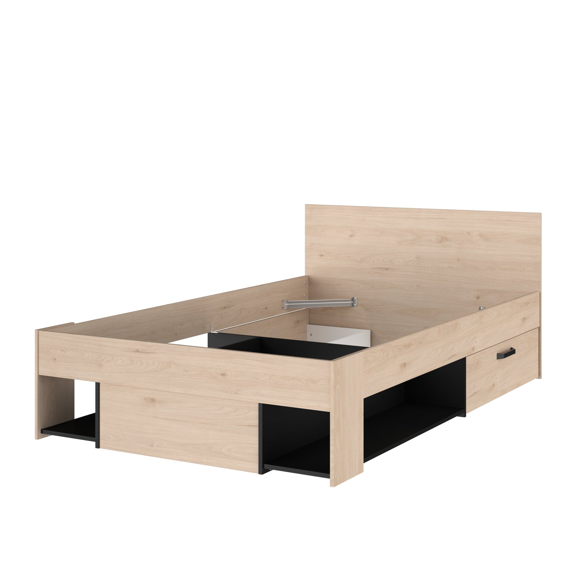 The Parisot Achille 2 Storage Bed is a sleek and contemporary bed frame that effortlessly combines smart storage with modern design. Featuring a light oak finish paired with contrasting black shelving, this bed brings a stylish edge to any bedroom while helping to keep your space tidy and well-organised.