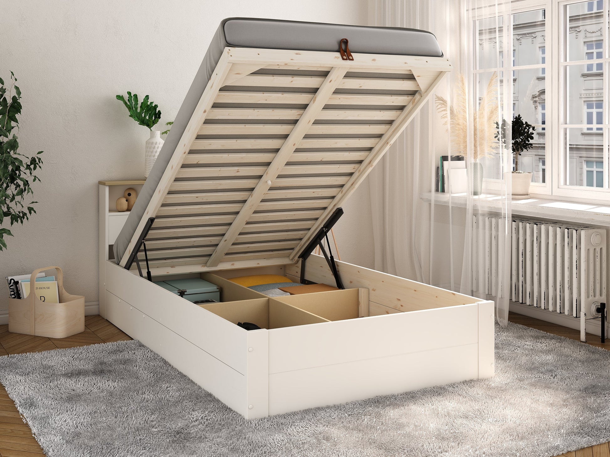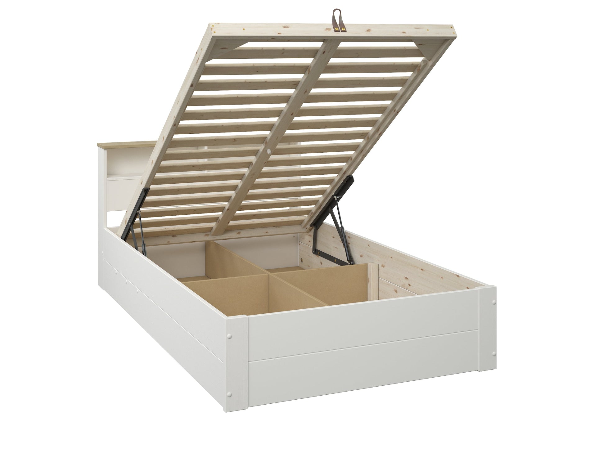 Kids Avenue Heritage Small Double Bed in White & Oak, the perfect new bed for your childs room. Featuring a stunning White & Oak finish this bed will fit into any interior seamlessly. The bed is manufactured with safety in mind, manufactured from solid Scandinavian pine giving it maximum durability and stability. Its small double design is perfect for kids who are growing up, comes with a hydraulic gas ram for the ottoman storage base its ideal for space saving and keeping rooms clean and tidy. this bed requires a mattress at 190cm x 120cm