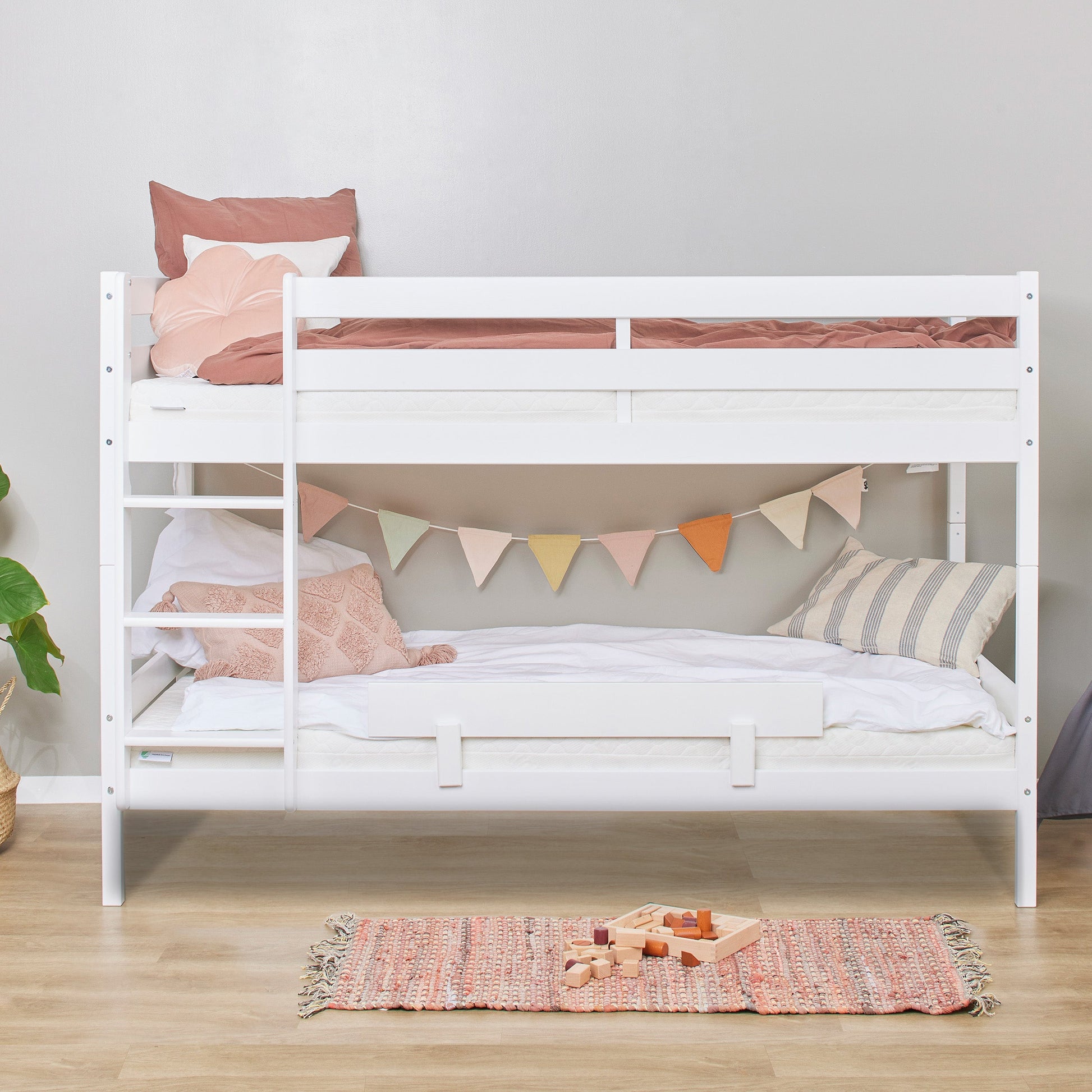 This classic shorter size bunk bed is a Scandinavian design crafted from solid lacquered pine and will be a lovely cosy place to sleep for your children. Perfect for the smaller bedrooms and younger children. Includes an extra safety rail on the bottom bunk for maximum peace of mind.