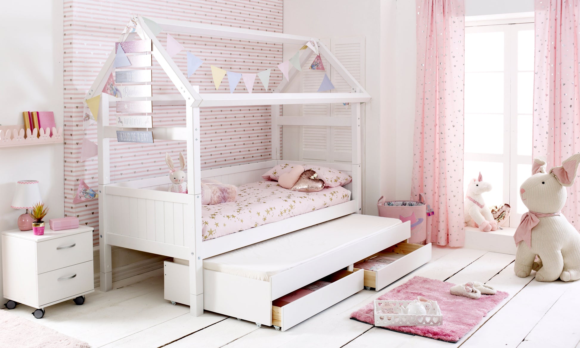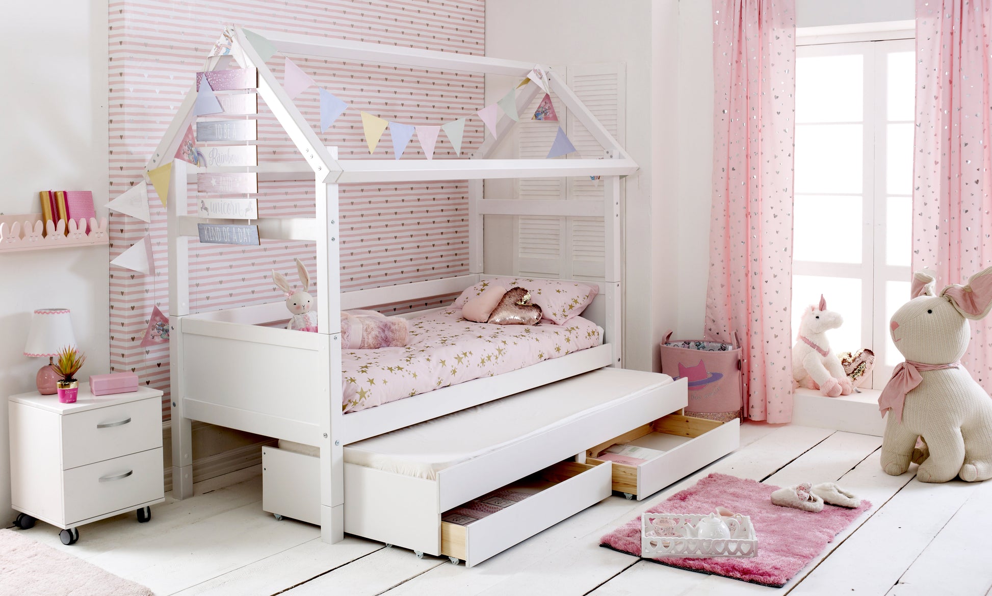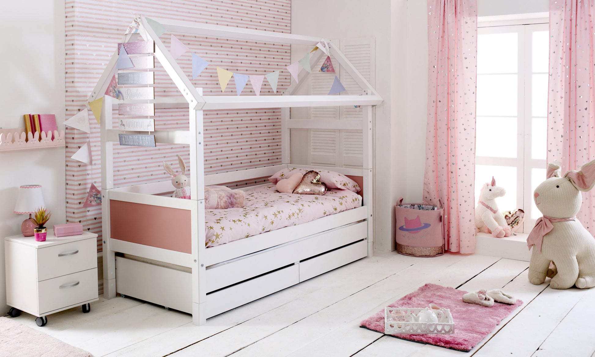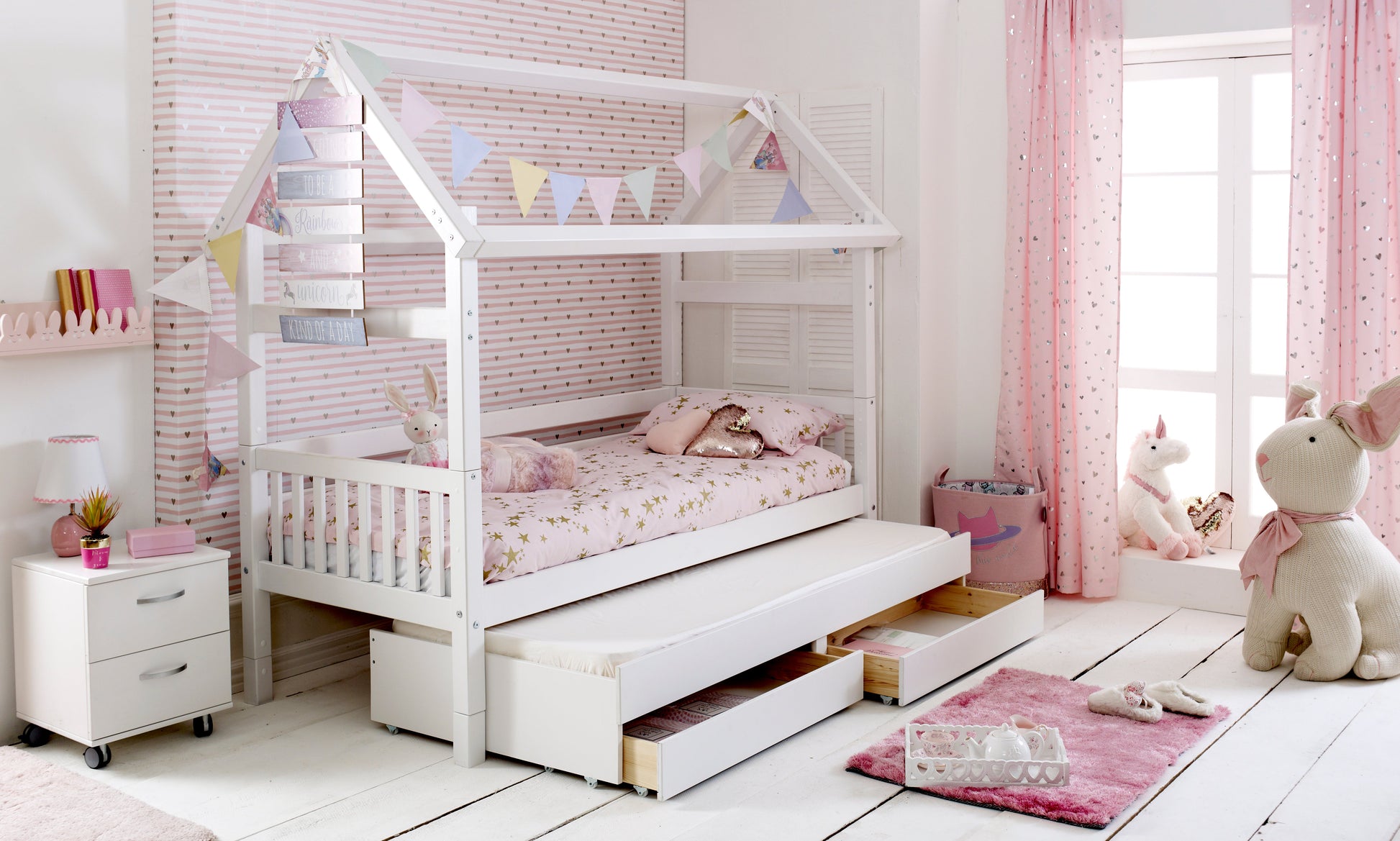 The Thuka Nordic Playhouse Day Bed 1 in White is a sturdy and stylish day bed single bed, made from solid Scandinavian pine and finished in a smooth white lacquer. The Nordic's contemporary design is accompanied by great functionality, and the creative playhouse design will be a lovely playful addition to your childs bedroom. The Nordic Playhouse Day Bed comes in plain white, and with a choice of five headboard finishes to complement any bedroom offering a contemporary or classic look. Choose from solid white, grey or rose, or a slatted white or tongue/grooved white finish.