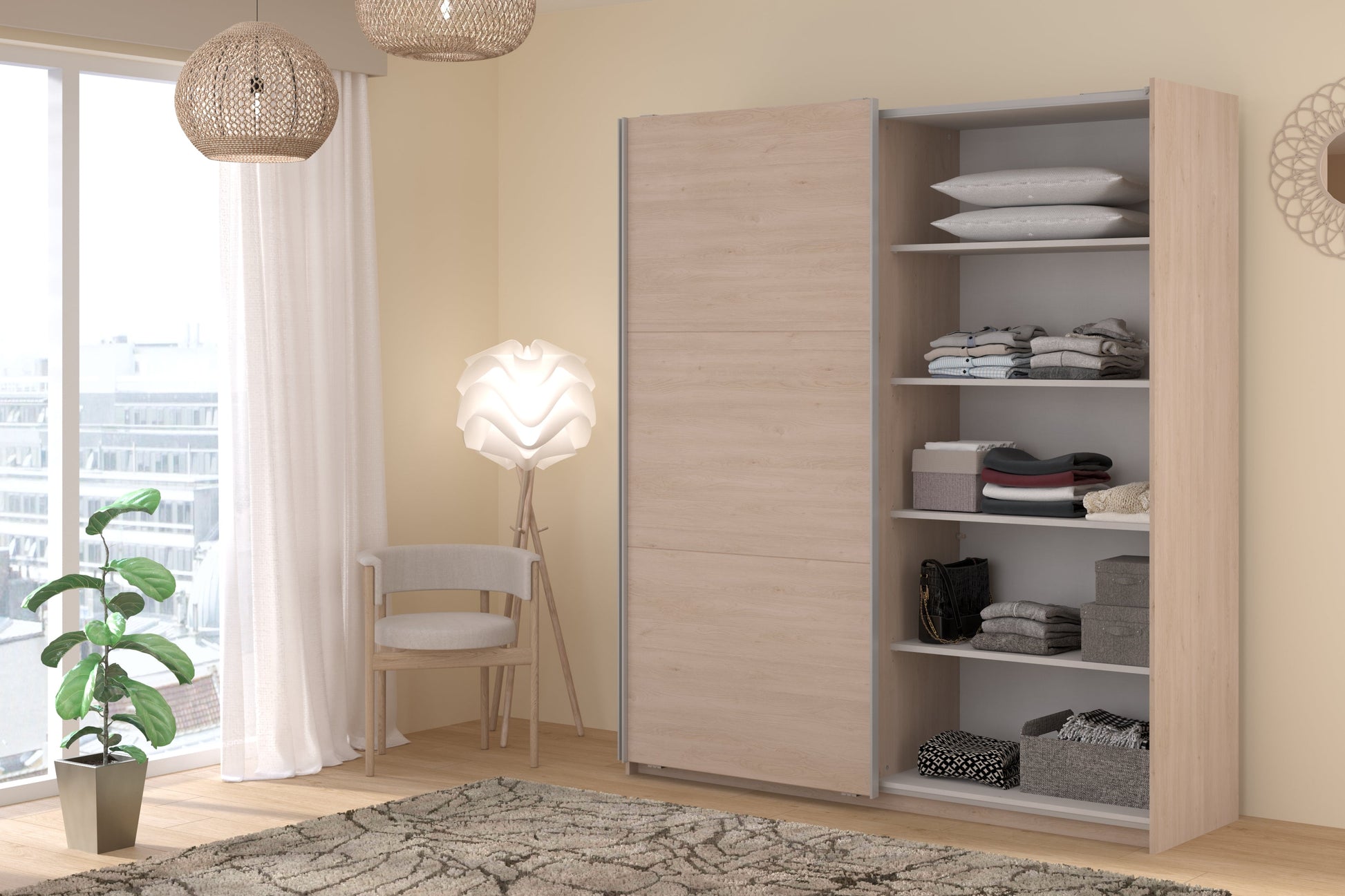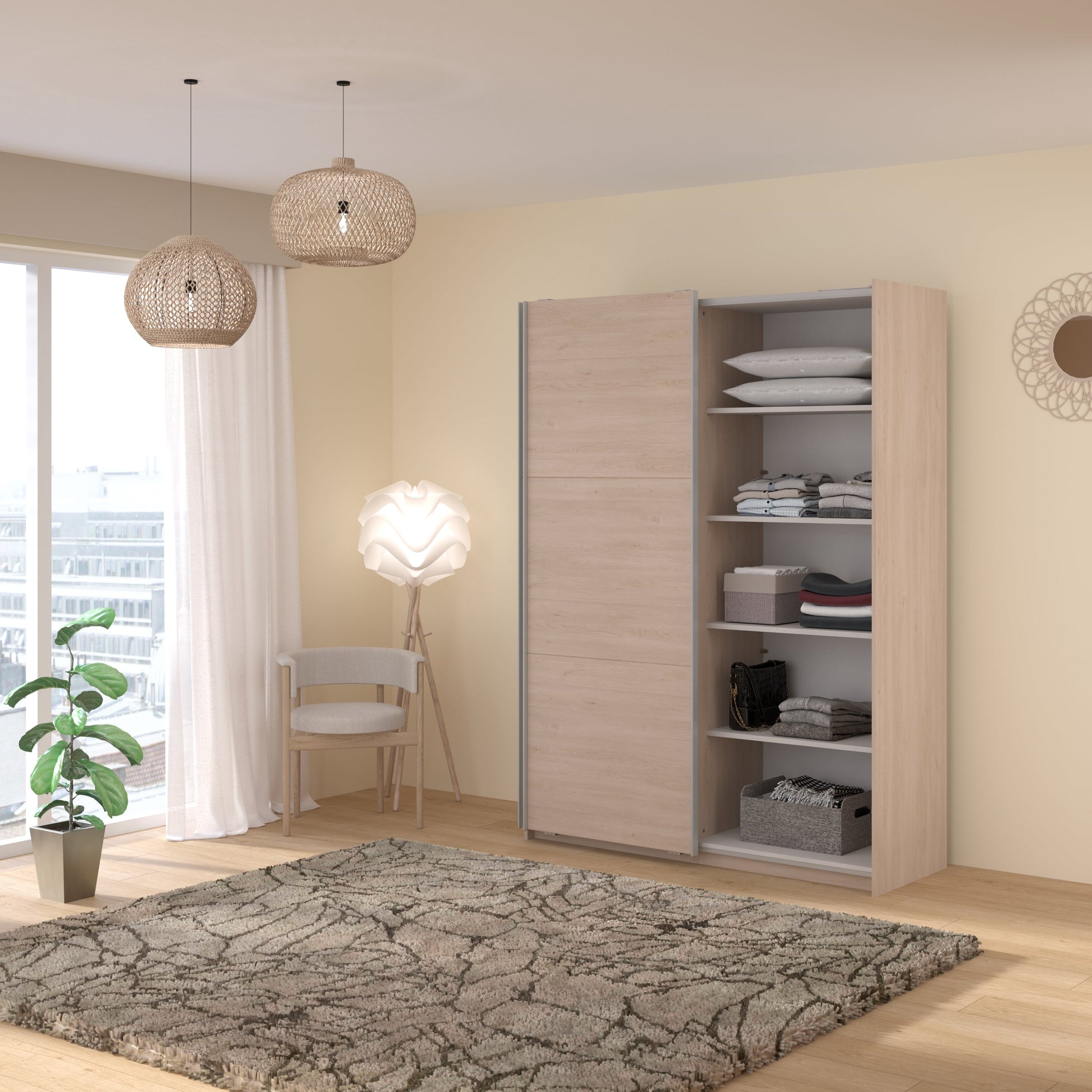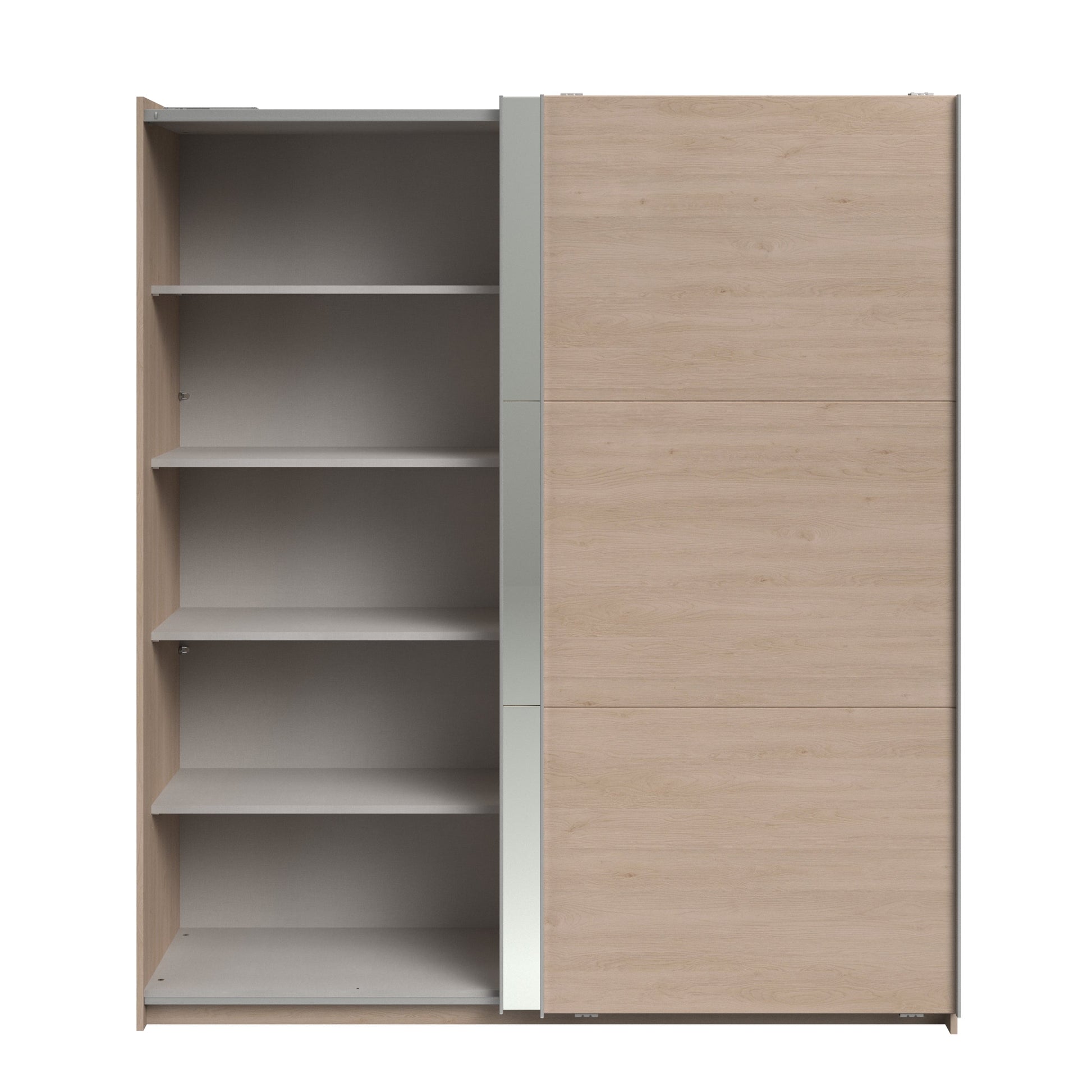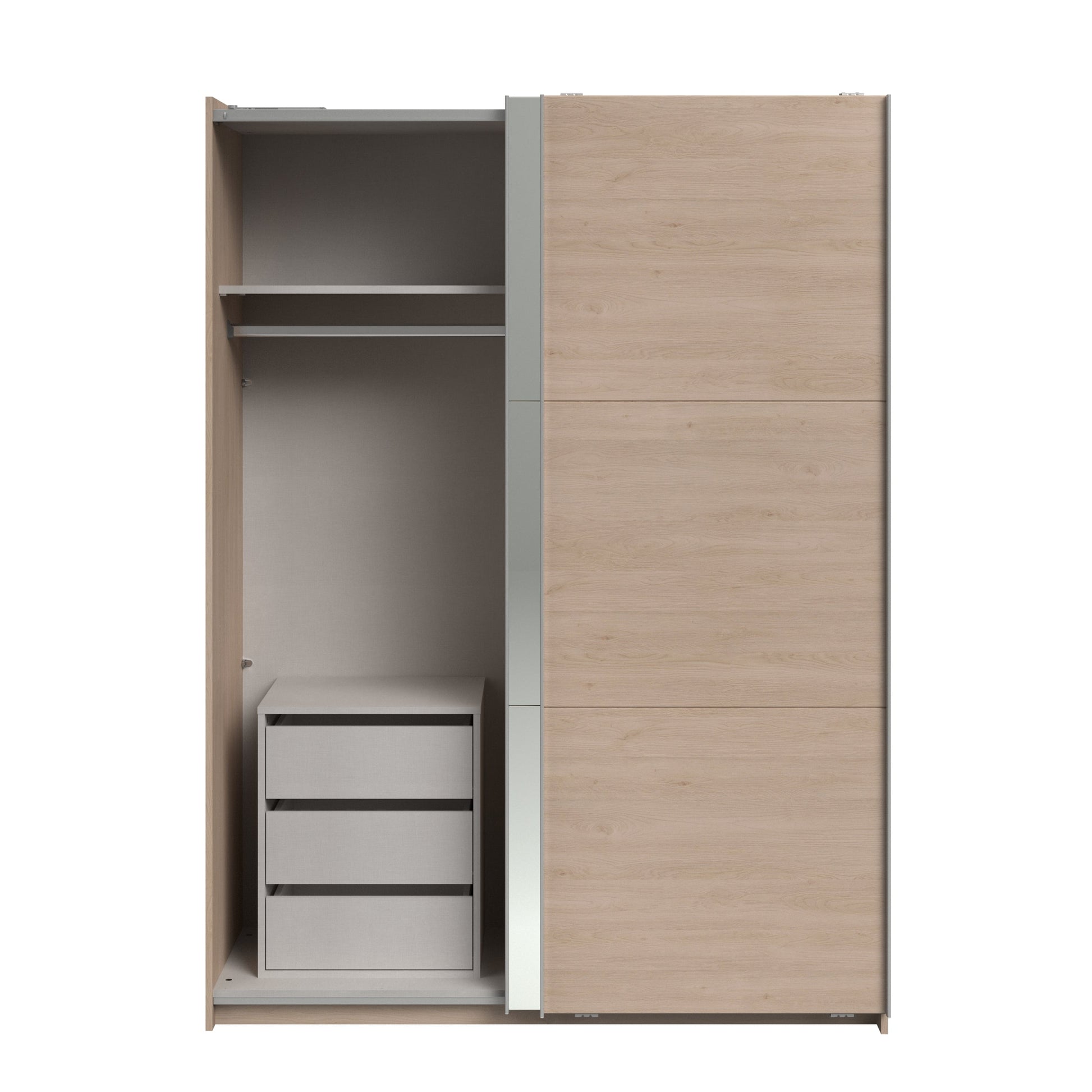 Parisot oak mirrored finish wardrobe with sliding doors. One side is hanging the other is shelves and can be reversed. Easy roll soft close mechanism. Smooth action sliding doors.Can be assembled on delivery if required. In stock for fast free delivery every postcode in the UK within 2 weeks! 6 internal layout options.