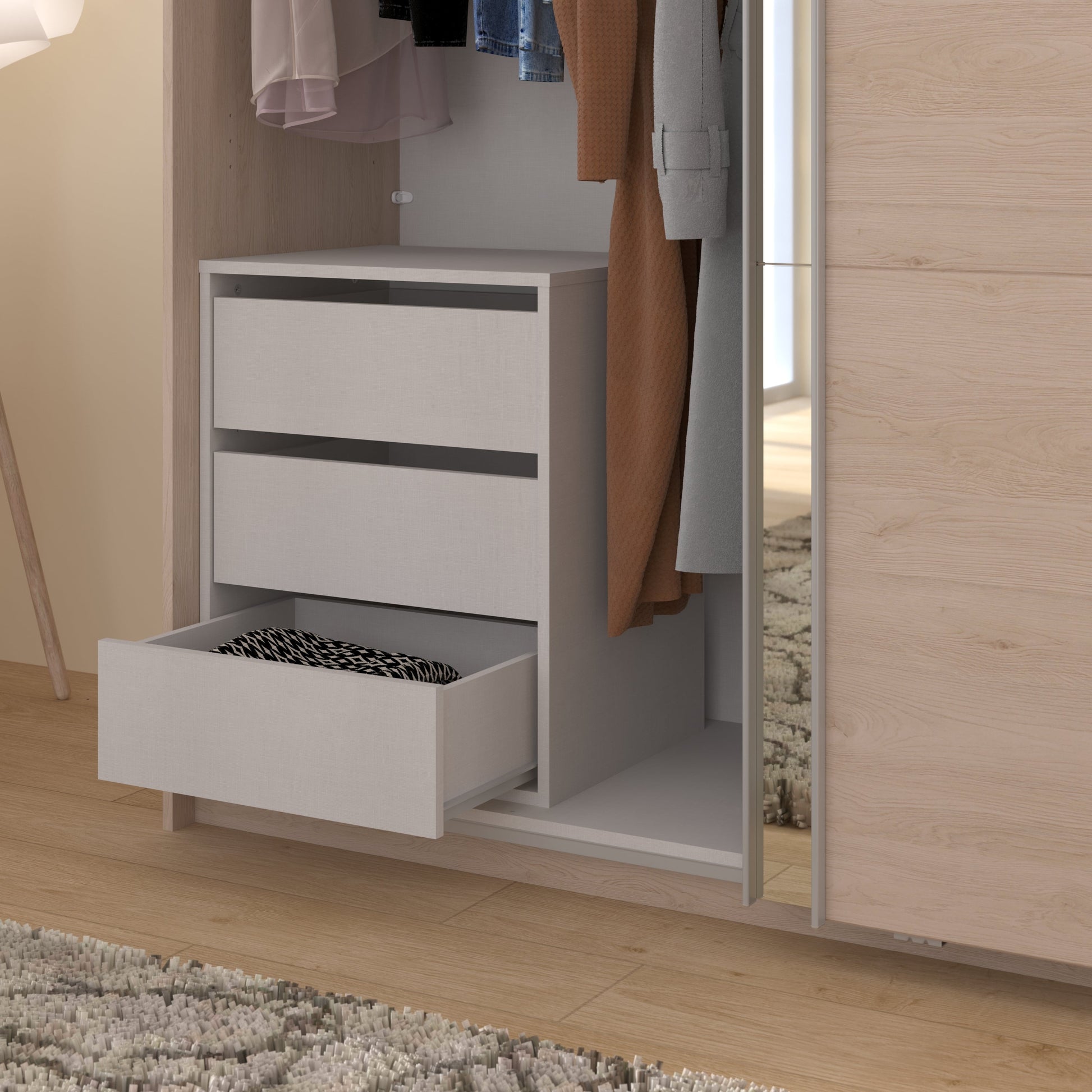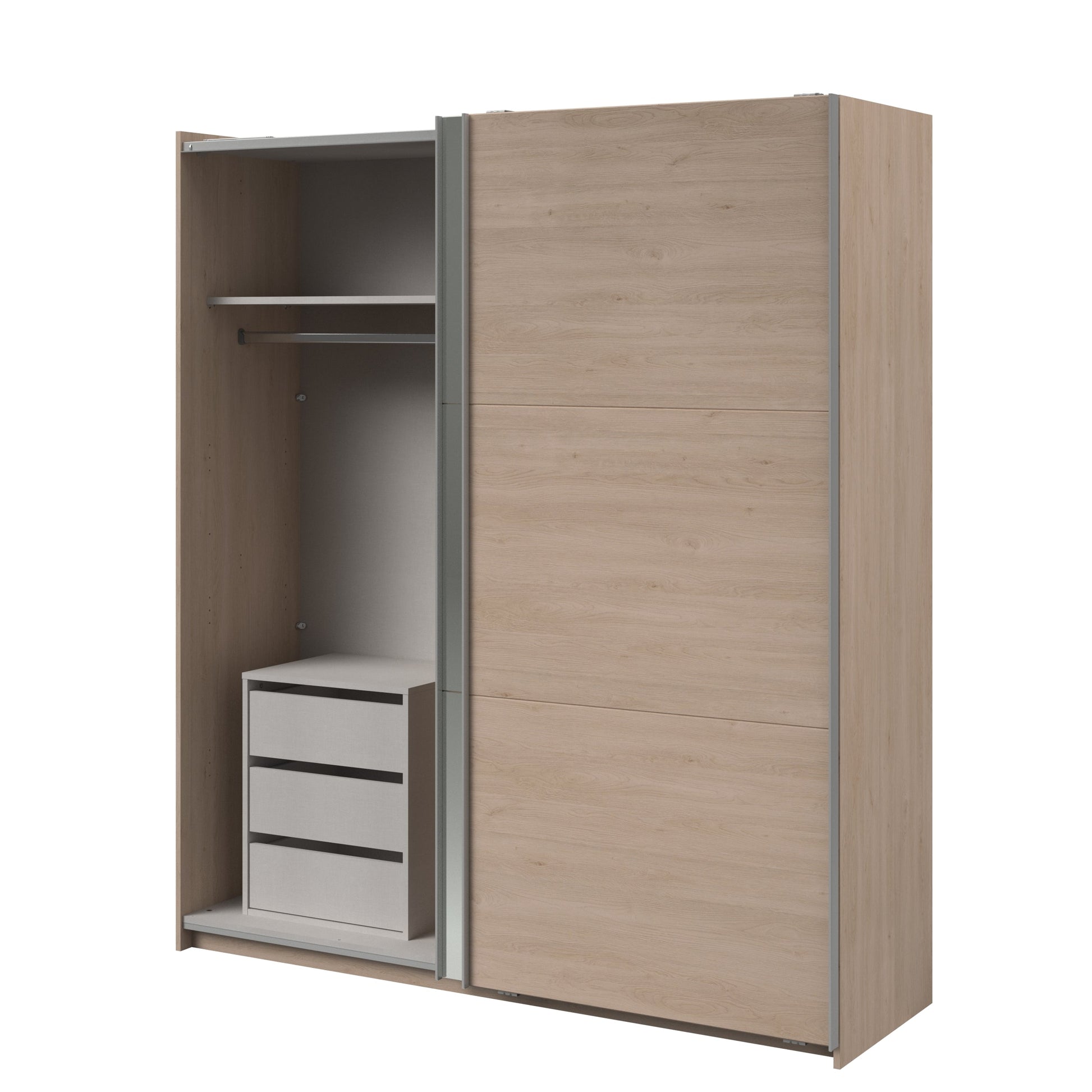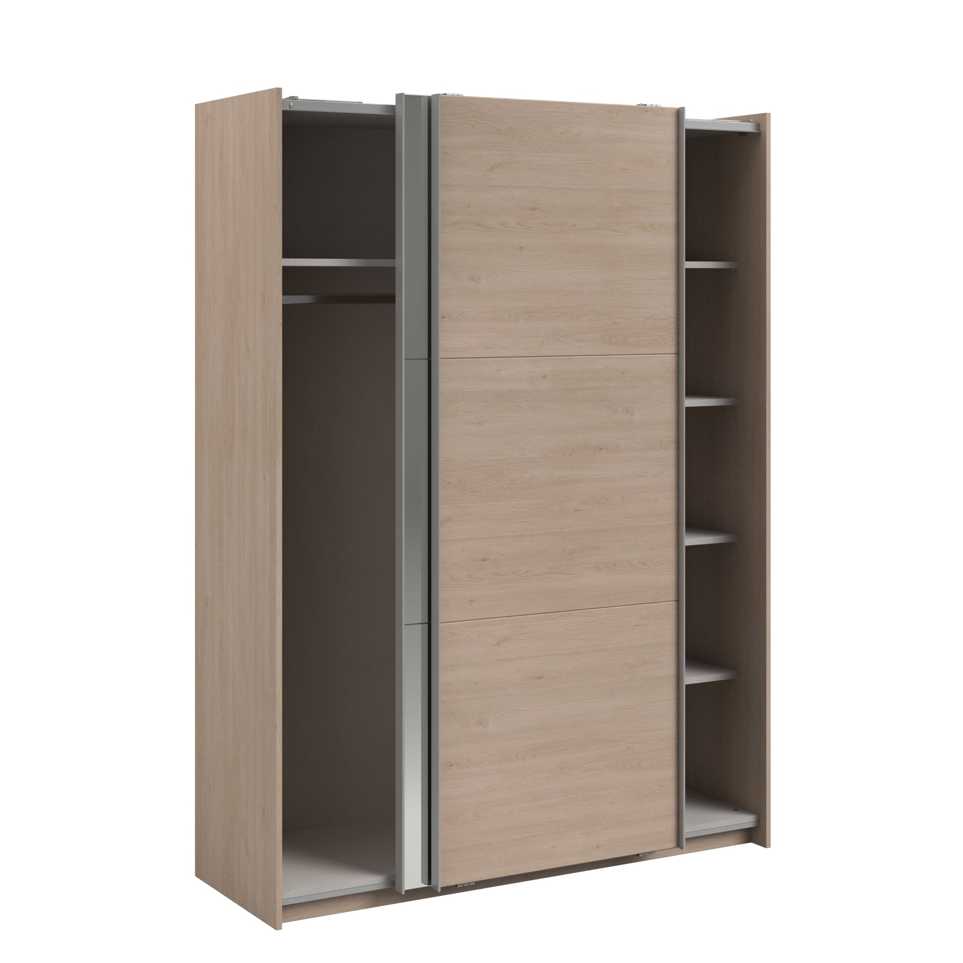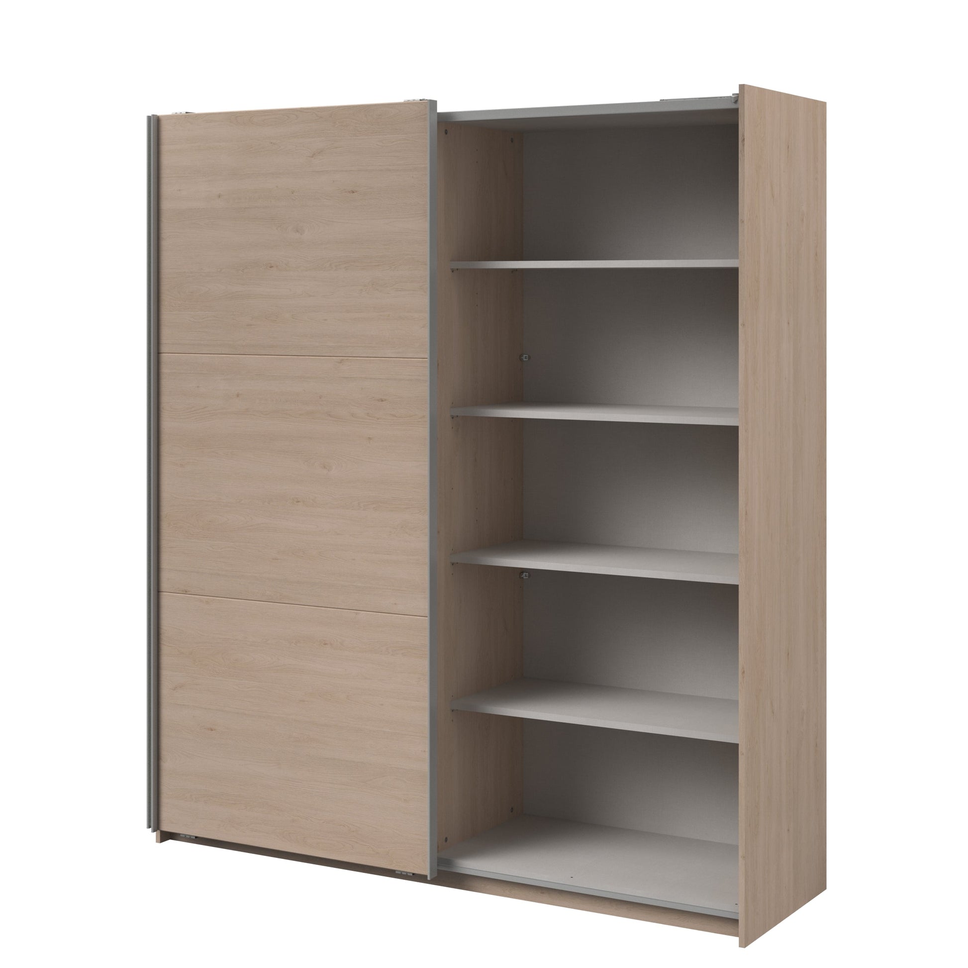 Parisot oak mirrored finish wardrobe with sliding doors. One side is hanging the other is shelves and can be reversed. Easy roll soft close mechanism. Smooth action sliding doors.Can be assembled on delivery if required. In stock for fast free delivery every postcode in the UK within 2 weeks! 6 internal layout options.